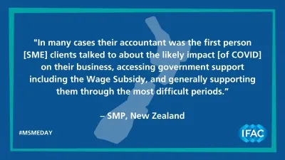 قال محاسب أسترالي: "كان المحاسبون المهنيون كمستشارين موثوقين هم أول الأشخاص الذين لجأ إليهم أصحاب الأعمال للمساعدة في وضع إستراتيجية من شأنها أن تمكنهم من العمل أثناء الوباء". في حين أن الآثار الدائمة للوباء على الشركات الصغيرة لن تكون مفهومة تمامًا لسنوات قادمة، كشف المشاركون عن إجماع دولي قوي بين SMPs على أن الوباء قد عزز هذه الديناميكية فقط.