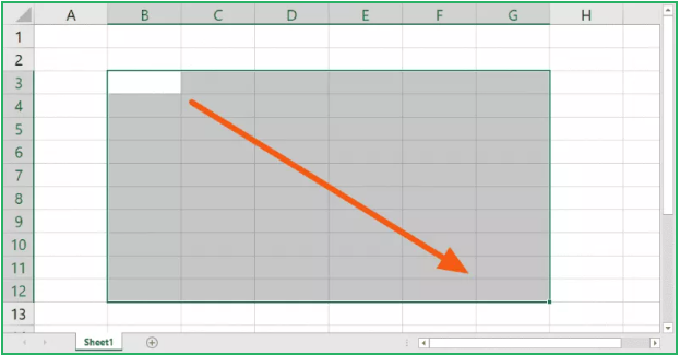ويتم ذلك عن طريق سحب الماوس فوق جدول البيانات، كل ما عليك فعله هو النقر فوق خلية وسحبها فوق جدول البيانات.