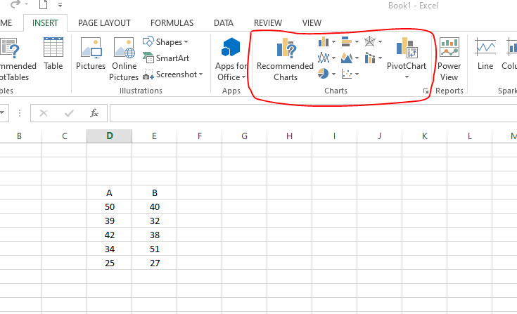 عندما يتم تحديد البيانات المطلوبة، انقر فوق إدراج -> الرسوم البيانية. إذا كنت تعرف بالضبط نوع الرسم البياني المناسب، فاختر من أحد القوالب. إذا لم تكن متأكدًا من نوع الرسم البياني، فانقر فوق المخططات الموصى بها في هذه الحالة، سيوفر لك Excel العديد من خيارات الرسم البياني التي تناسب بياناتك بشكل أفضل.