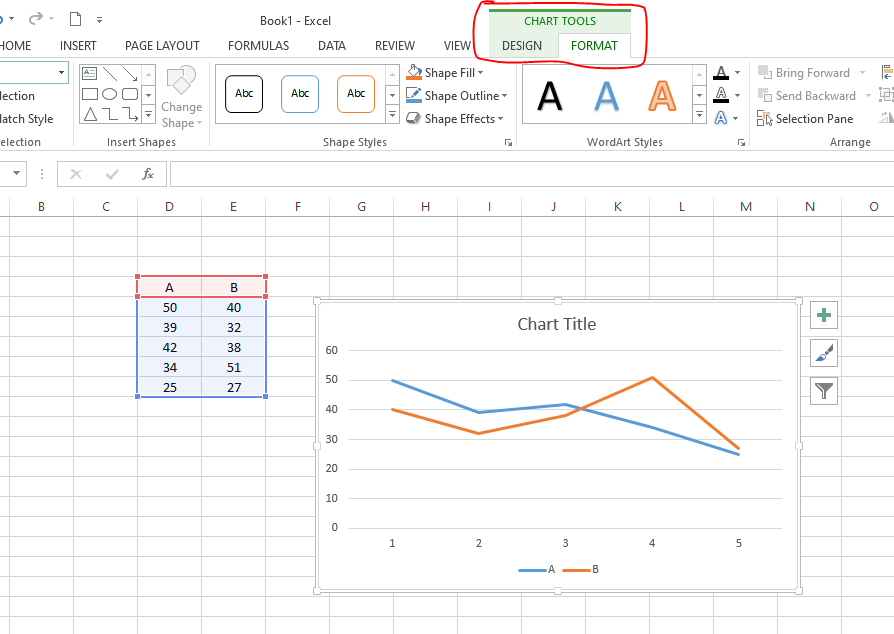 التنسيق: يسمح خيار التنسيق بتغيير مظهر الرسم البياني. على سبيل المثال، يمكنك تغيير ألوان عناصر المخطط وإضافة الأشكال وتأثيرات الأشكال إليها.