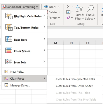 لمسح التنسيق الشرطي، يمكنك استخدام الزر "مسح القواعد" في "قسم النمط" ضمن علامة التبويب نفسها.