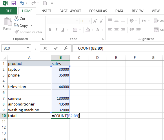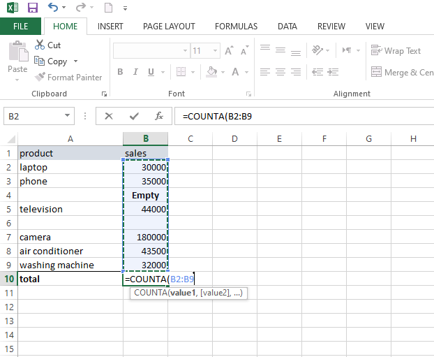 مثل وظيفة COUNT، تحسب COUNTA كل الخلايا بغض النظر عن نوعها. أي، بخلاف COUNT الذي يحسب فقط الأرقام، فإنه يحسب أيضًا التواريخ أو الأوقات أو السلاسل أو القيم المنطقية أو الأخطاء أو السلسلة الفارغة أو النص.