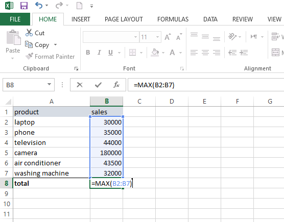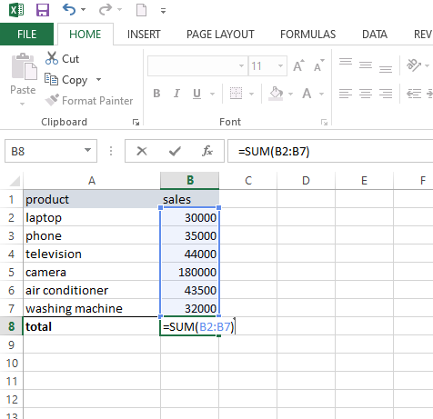 - تحديد بسيط يجمع قيم العمود. SUM (A2: A8)=