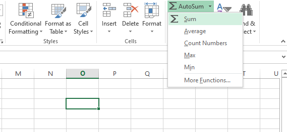 للمهام السريعة واليومية، تعد وظيفة "الجمع التلقائي" هي الافضل. لذلك، انتقل إلى علامة التبويب الصفحة الرئيسية، في الزاوية اليمنى القصوى، وانقر فوق خيار الجمع التلقائي. ثم انقر فوق علامة بالاسفل لإظهار الصيغ المخفية الأخرى.