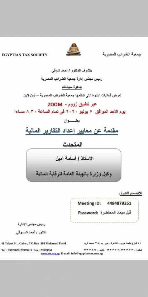 برئاسة الدكتور / أحمد شوقي (رئيس مجلس إدارة جمعية الضرائب المصرية)