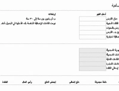 نموذج عمل حاسبة قرض مع الدفعات الإضافية