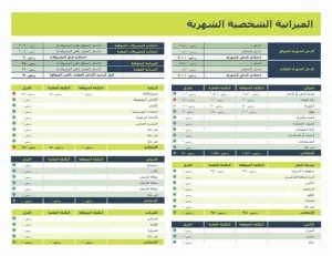 نموذج عمل جدول بيانات الموازنة الشخصية الشهرية