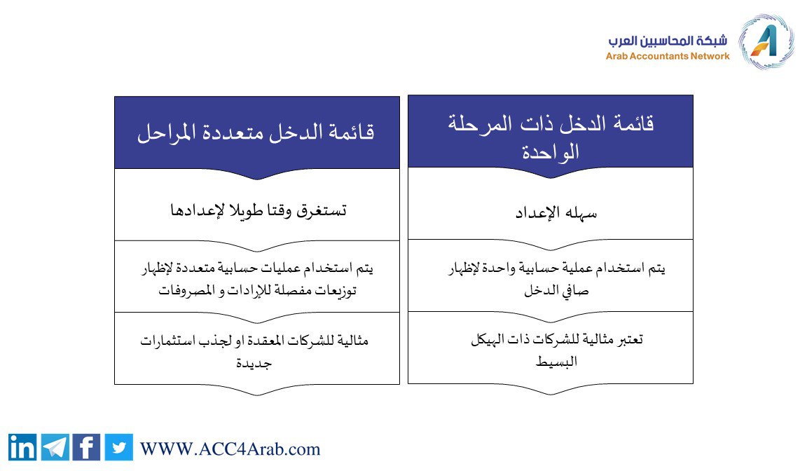 1. قائمة الدخل ذات المرحلة الواحدة Single step income statement