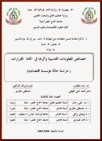 رسالة ماجستير بعنوان خصائص المعلومات المحاسبية وأثرها في اتخاذ القرارات - دراسة حالة مؤسسة اقتصادية